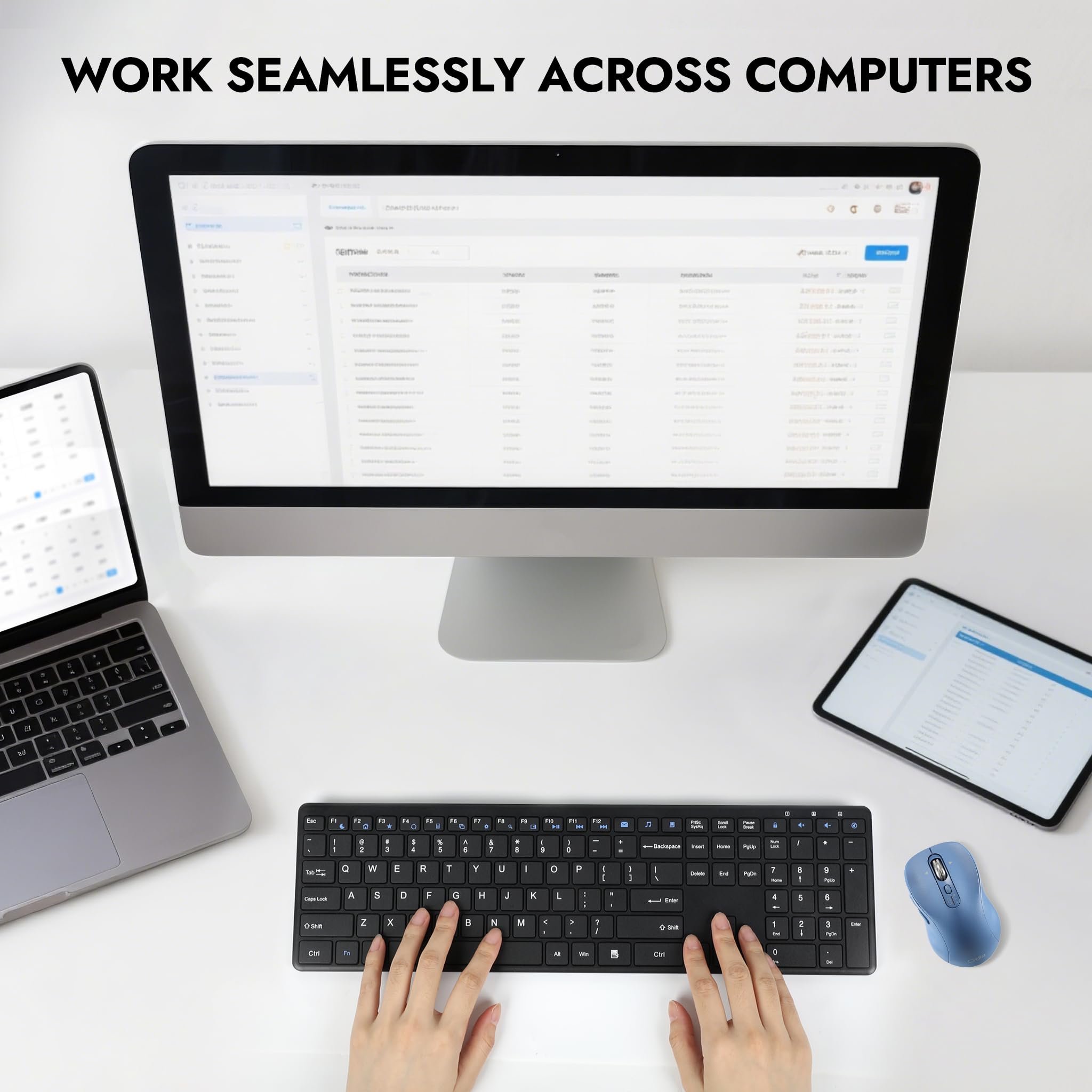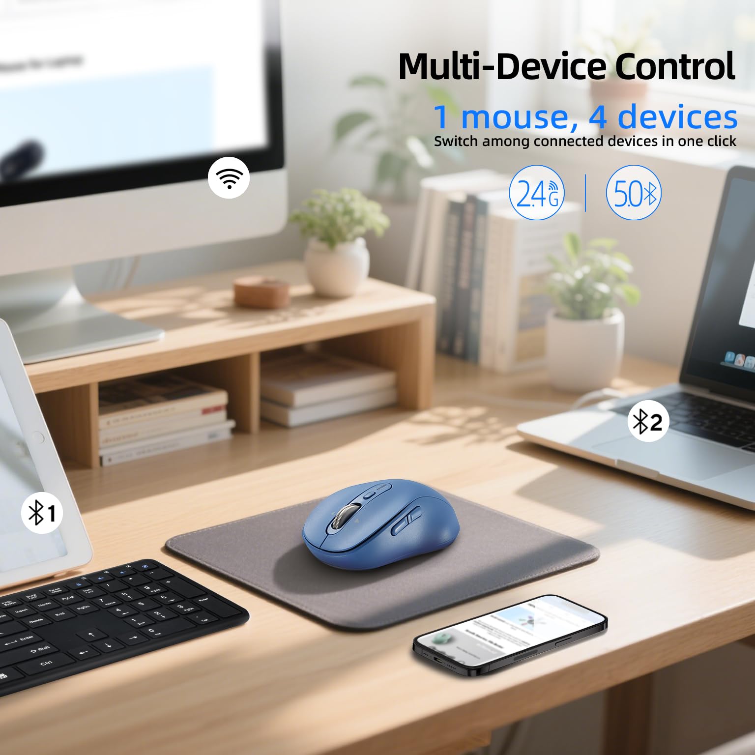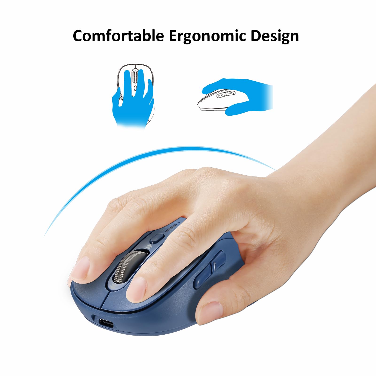 Wireless Bluetooth Mouse Rechargeable,Multi Device Ergo Computer Mouses,4-Way Super Scrolling,± 3200 DPI,10 Buttons,Plug&Play,Quiet,USB Cordless Mice for Laptop,Tablet,Mac,iPad,PC,Phone (Blue)