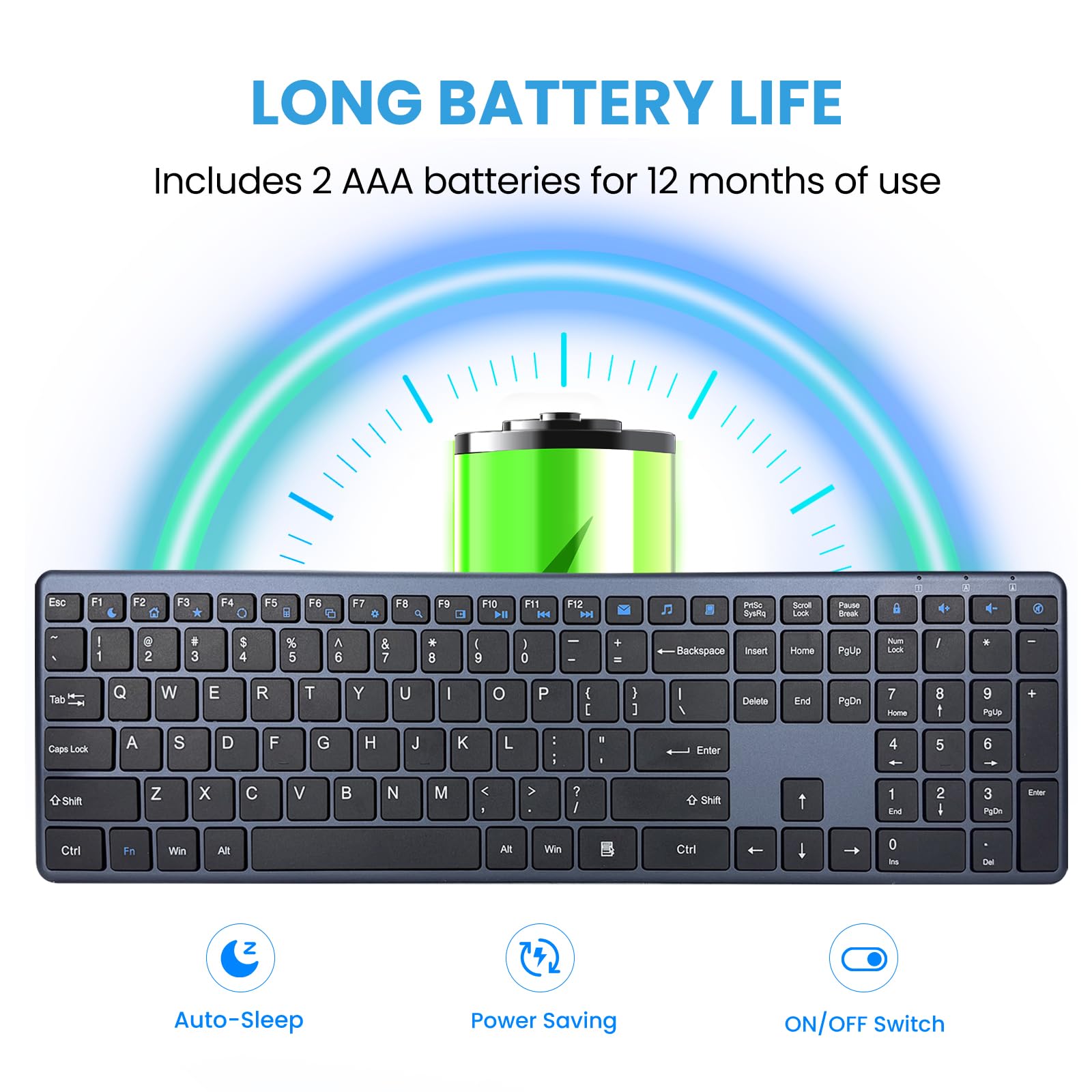 Wireless Keyboard-2.4G Ultra Slim Quiet Full Size USB PC Computer Keyboard,19 Multimedia Keys,Number Pad,Plug&Play,Lag-Free Ergo,Long Battery life for Desktop,Laptop,Smart TV,MAC,Windows,QWERTY